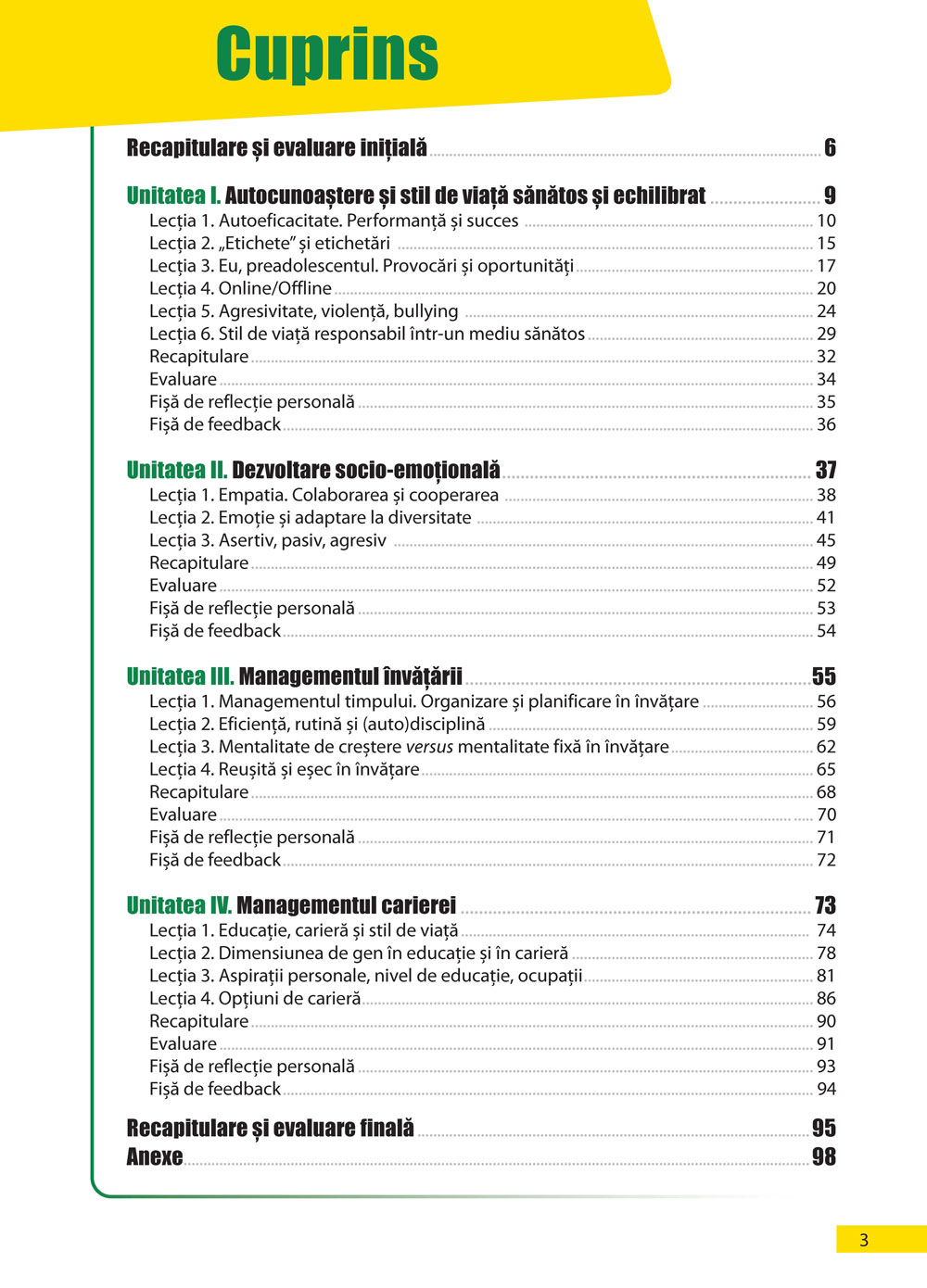 afișează cuprinsul manualului și îți permite accesarea oricărei lecții printr-un salt direct;
